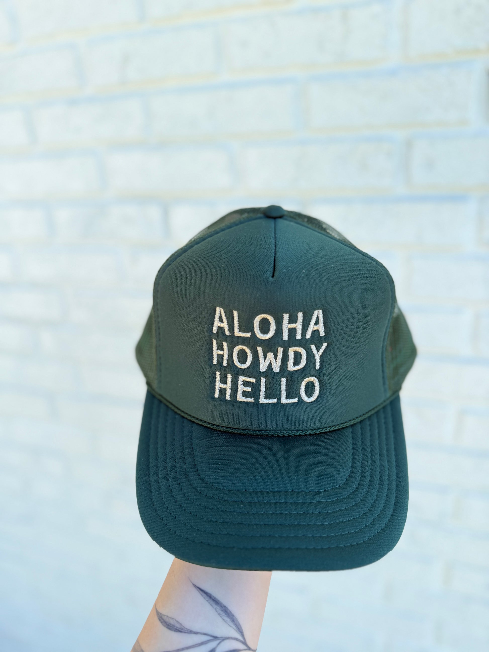 Green Aloha Howdy Hello Trucker Hat