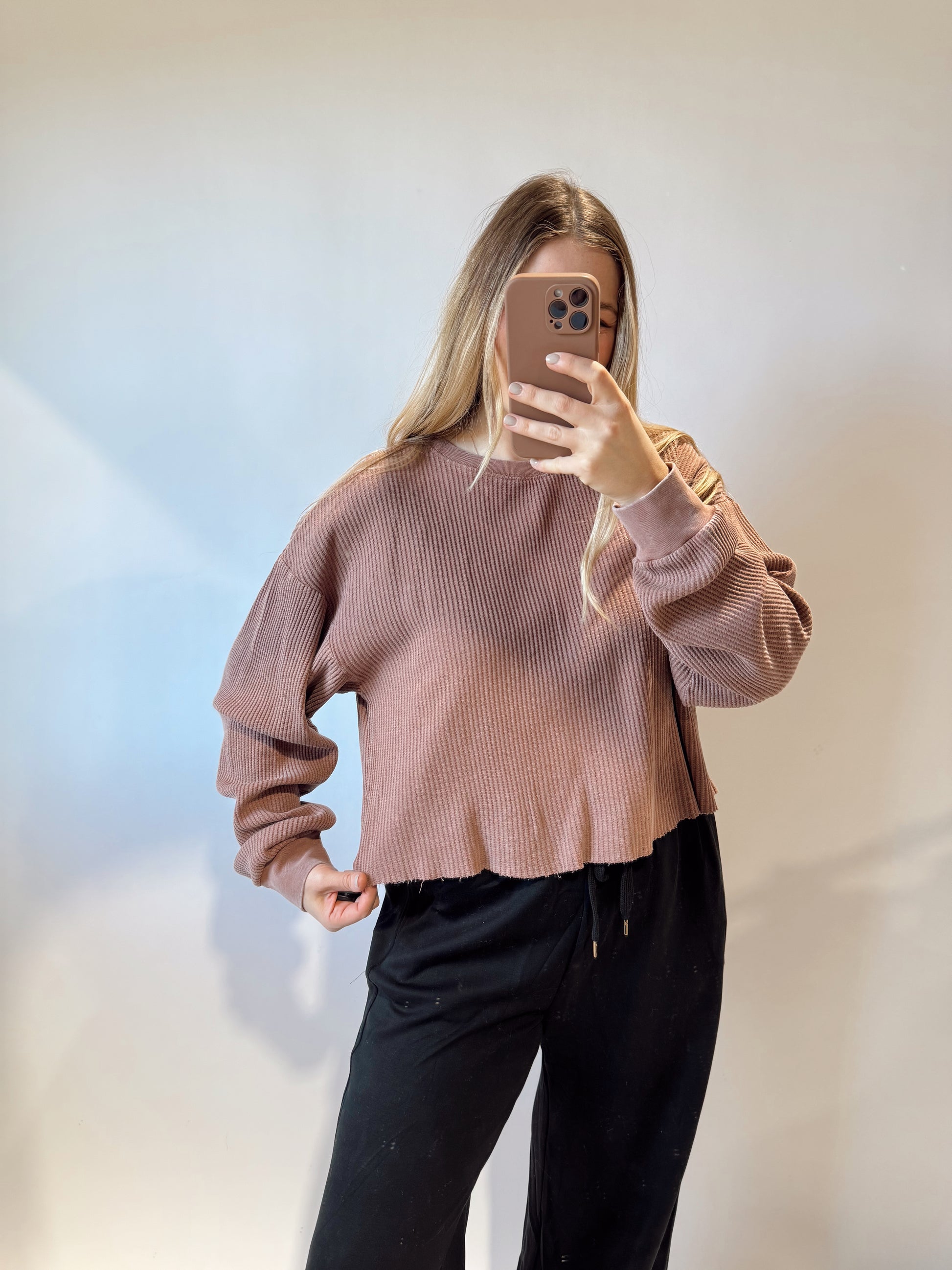 Waffle Knit Long Sleeve Dusty Rose